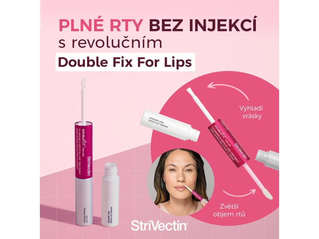 Chcete mít mladistvě plné rty se zpevněnou konturou? Jde to i bez estetických zákroků. Nové high-tech Double Fix 2v1 skrývá na jedné straně sérum pro viditelné vyhlazení rtů a na druhé sérum pro vyhlazení vrásek v okolí úst. Jeden přípravek = jedna cena = dva produkty.
